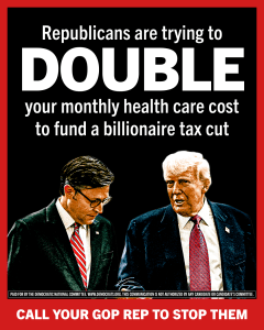 DNC priekšsēdētājs Kens Martins paziņojumā sacīja: “Tieši pēc brīvdienām veselības aprūpes izmaksas amerikāņiem visā valstī notiks vairāk nekā divkāršās, jo republikāņi atsakās strādāt ar demokrātiem, lai labotu šo krīzi. Tāpēc DNC visur, kur ģimenes zina, ka republikāņi gatavojas savīt kabatas grāmatas un cenas viņiem no veselības apdrošināšanas.