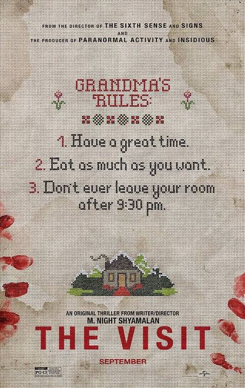 Vizīte Sekoja divi brāļi un māsas, kas apmeklēja viņu veco vecvecāku māju Pensilvānijas laukos un atklāja drausmīgus noslēpumus par viņiem. Filmā bija viņa preču zīmes vērpjot, un tā bija Prezentēts atrastajā kadra stilākas dažus gadus iepriekš bija kļuvis ļoti populārs, pateicoties Paranormāla aktivitāte franšīze. Vizīte ir ievērojams arī ar to, ka tas ir bijis Pašfinansēts Shyamalankurš pēc savas karjeras skaršanas līdz galam paziņoja, ka vēlas, lai spēle būtu āda uz priekšu. To paņēma Blumhouse, un to izplatīja Common, sākot veiksmīgu švīku ar Shyamalan studiju, kas beidzās tikai nesen.
