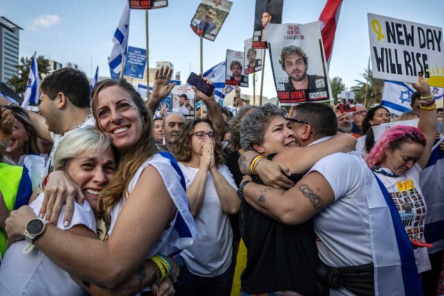 Draugi un ģimene svin Izraēlas ķīlnieku atgriešanos