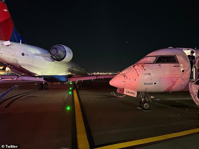 CRJ-900 reģionālās reaktīvās lidmašīnas, kuras vadīja Delta meitasuzņēmums Endeavour Air, trešdien ar nelielu ātrumu bija ar taksometru, kad viņi viens otram bija apgriezti aptuveni plkst. 9.56.