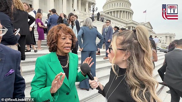 TV reportiere Alisona Šteinberga jautāja Kalifornijas demokrātam Maksīnam Votersam, vai viņas partijas prasības saglabāt valdību par prioritāti nelegālu migrantu vajadzībām pār ASV pilsoņiem