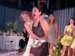 Šis ir brīdis, kad kā “salds” pušķa lozēšana kāzās pārvēršas par visa kautiņu pēc tam, kad sieviete mēģināja noķert ziedu kārtību no kolēģa viesa rokas.