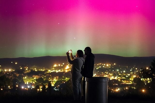 Aizvadītās nakts ģeomagnētiskās aktivitātes stiprums nozīmēja cilvēkus visā Austrālijas dienvidos un līdz pat Pērtai, kas varēja redzēt polārblāzmu.