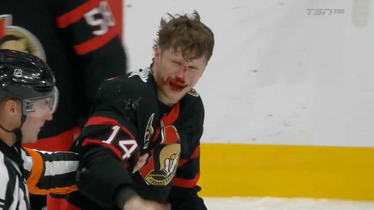 Apcietinājums, c’est Jayden struble qui a attiré le plus l’coure. Le Défenseur A Carrément Passé Le Ok.- O. à Jan Jenik, Lui Infrigeant Une Sévère Coupure Au Visage. Tous ont pu apercevoir le sang couler sur le nez du Joueur des sénateurs au bomand de don départ de la patinoire.