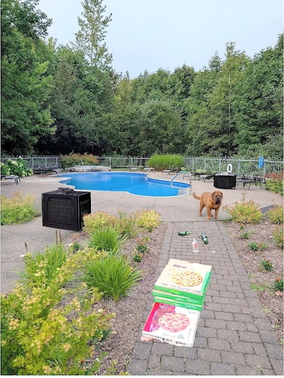 La Cerise Sur le Sundae, c’est qu’il donne comme salīdzinājums les règles qu’on peut retrover dans les piscines. Et il montre une foto d’oNe belle cour arrière avec une piscine, suivie d’oNe foto de la même piscine avec des boîtes de pizza, des bières atvi, un système de don et un chien qui ne comrend pas trop pourquoi il se retroUve sur surte foto.