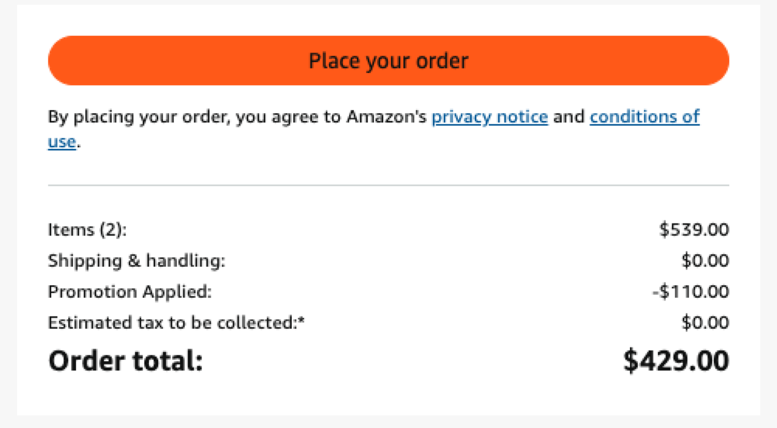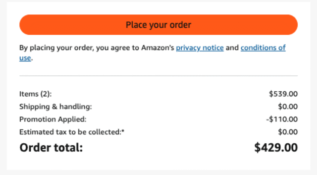 Kad esat pārcēlies uz izrakstīšanos, jums vajadzētu redzēt akciju, kas tiek piemērota jūsu pasūtījuma kopsummā.