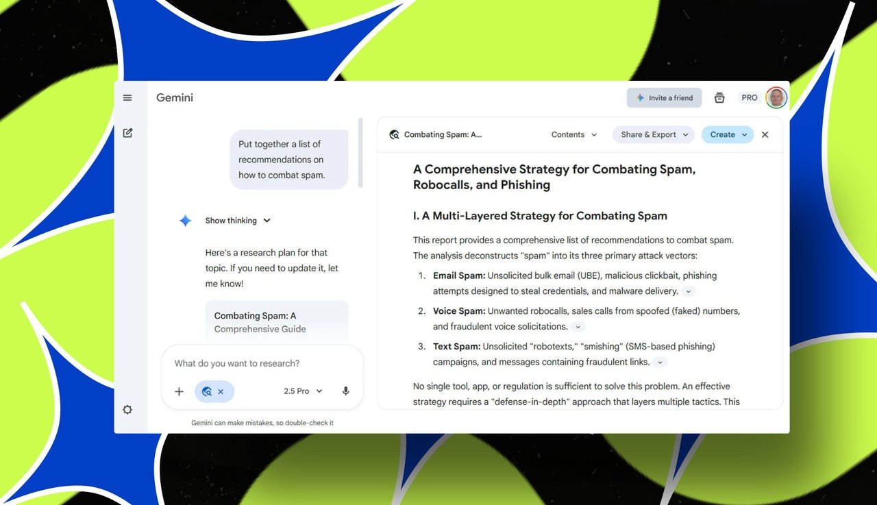 “Viena no mūsu pieprasītākajām funkcijām ir šeit: Gemini Deep Analysis tagad var izmantot saturu no jūsu Gmail, Diska un Chat un izmantot to tieši jūsu izpētē,” teikts Google ziņojumā. Trešdienas emuāra ieraksts. “Tas nozīmē, ka varat izveidot vēl visaptverošākus pārskatus, ievelkot informāciju tieši no sava Gmail, Diska (tostarp dokumentiem, prezentācijām, izklājlapām un PDF failiem) un Google tērzēšanas, kā arī no dažādiem avotiem no tīmekļa.”