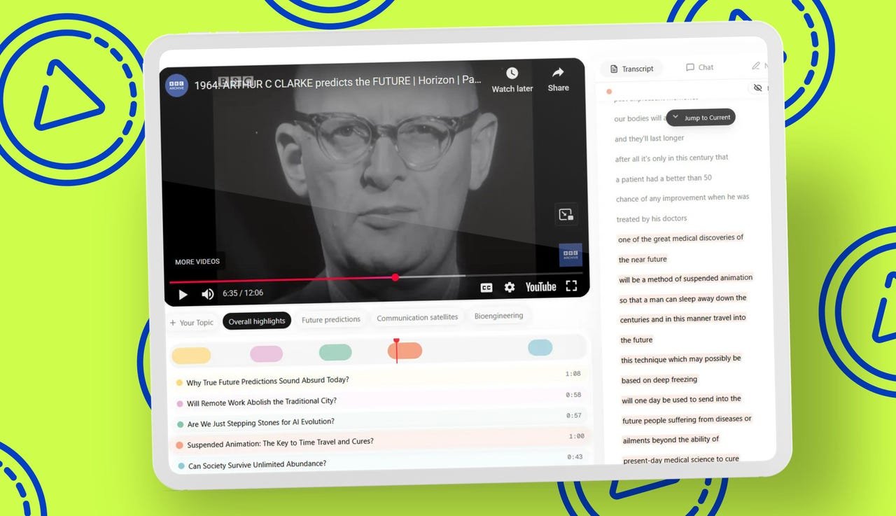 TLDW (pārāk ilgi; neskatījos) analizē YouTube videoklipus un izceļ galvenos momentus no tiem. Rīks parāda saites uz katru galveno brīdi, lai jūs varētu ātri pāriet uz jebkuru no tiem un skatīties tikai konkrēto klipu. Atšifrējums parāda izrunātā audio tekstu; izvēloties konkrētu brīdi, tiek izcelts tā teksts stenogrammā. Pats labākais, ka varat tērzēt ar iebūvēto AI, lai uzdotu konkrētus jautājumus par videoklipu.