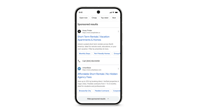 Plus, Google saka, ka galvene “sponsorētie rezultāti” var parādīties gan virs, gan zem AI pārskatiem-īsie AI rakstīti kopsavilkumi, kas parādās meklēšanas rezultātu augšgalā, lai sniegtu ātras atbildes. Lapas apakšā parādīsies arī teksta reklāmu “sponsorēto rezultātu” galvene ar visām teksta reklāmām, kas sagrupētas zem etiķetes. Tos var sabrukt ar to pašu pogu “paslēpt sponsorētus rezultātus”, ja vēlaties koncentrēties uz organisko saturu.