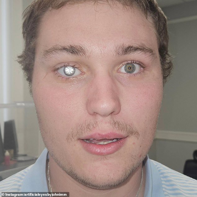 Protēzes radītājs Džons Imms uz X rakstīja: “Es sadarbojos ar šo pacientu “Sleiteru”, kurš izgatavo juvelierizstrādājumus, lai padarītu viņu par mākslīgu aci ar dimanta varavīksneni.