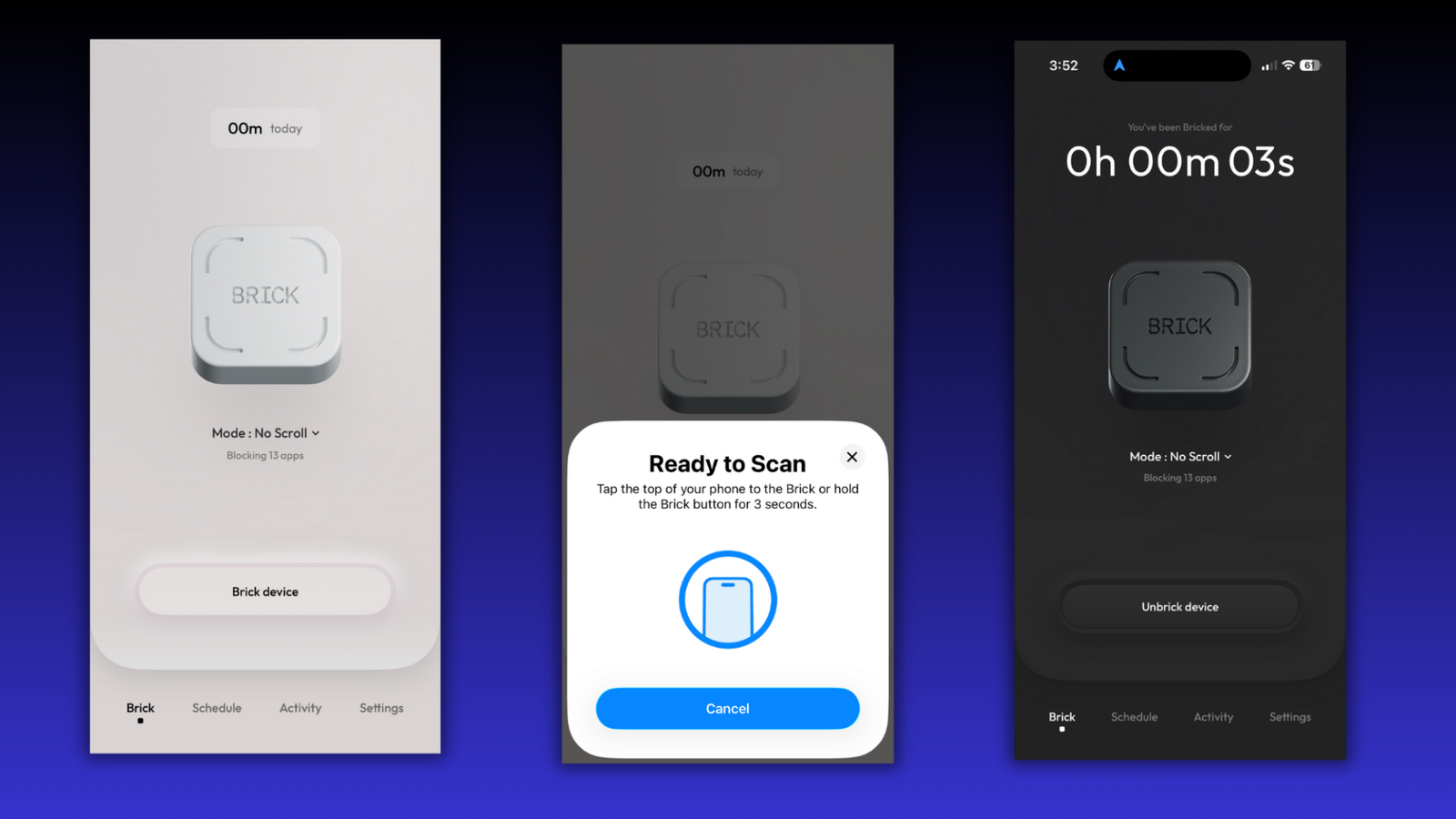 Ekrāna laika pārvaldības lietotnes var būt lieliskas, lai nodrošinātu, ka dienā sociālajos saziņas līdzekļos pavadāt tikai noteiktu laiku, taču pastāv liela problēma — tās ir viegli apiet. Izmantojot iPhone iebūvēto lietotņu ierobežojumus, es ātri ierados iezagties vēl vienā TikTok minūtē, kas pēc tam kļuva par vēl vienu stundu. Brick ir arī lietotne, taču tā pievieno arī fizisku komponentu, kas atņem vienkāršu apiešanu.