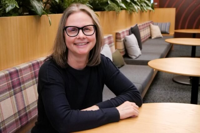 Kolete Stallbaumere, Microsoft WorkLab līdzdibinātāja un autore WorkLab: pieci gadi, kas satricināja biznesa pasauli un radīja AI nākotni. (GeekWire fotoattēls / Tods Bišops)