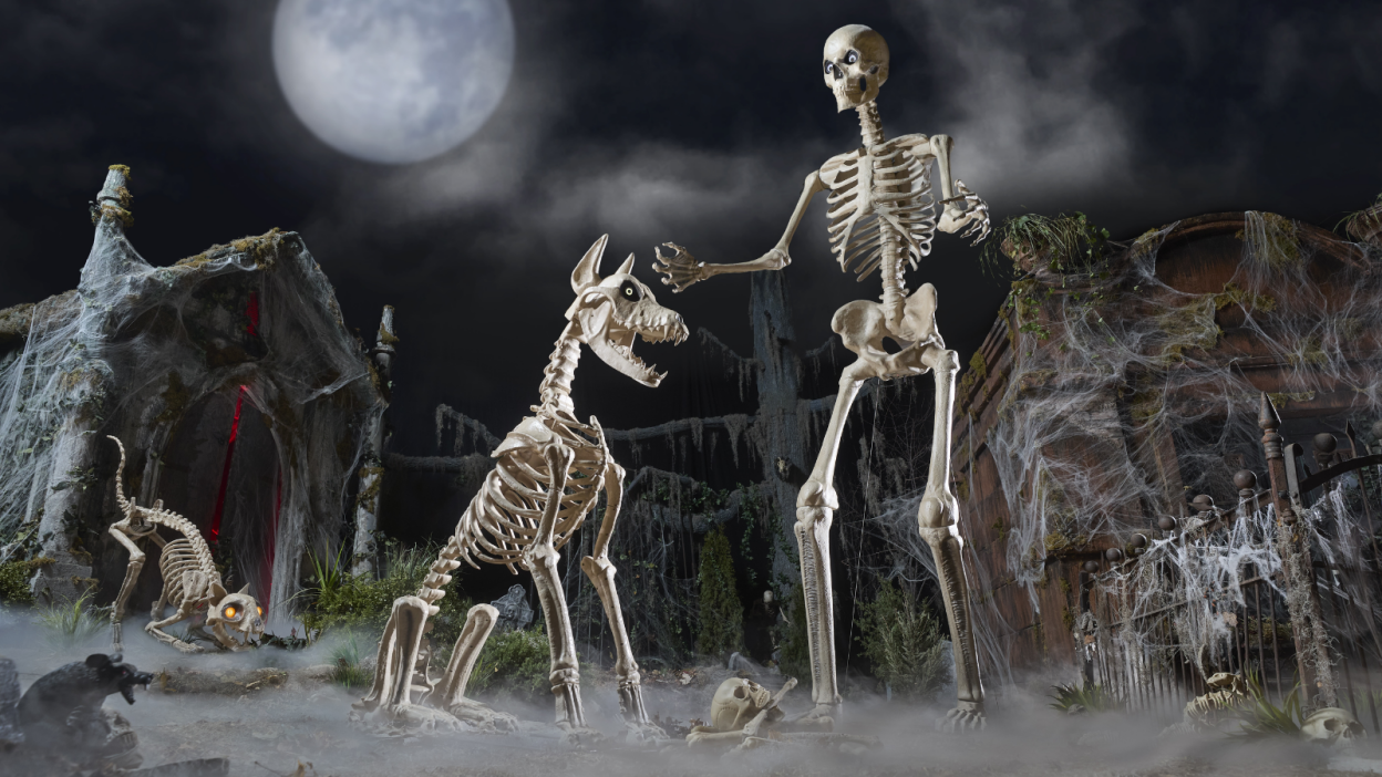 Ietaupiet līdz USD 220: Sākot ar 9. oktobri, ir nopērkama tonna Dwelling Depot milzu Helovīna rotājumu par līdz 50% atlaidi-ieskaitot Skelly 5 pēdu sēdošo suni, 12 pēdu lielo pļāvēju, 15 pēdu garu Worricrow un bēdīgi slavenā 12 pēdu Skelly saišķi ar savu 5 pēdu Skelly suni.