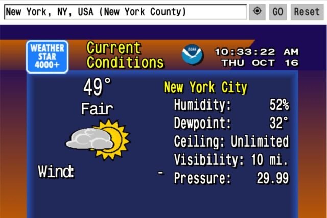 Tas bija vienkāršāks laiks, kas piepildīts ar ambient clean jazz un teletekstu. Ja tu tikko uzelpoji smagu ilgas nopūtu, vai man tev ir jaunumi. Lūk WeatherStar 4000+tīmeklī veidota The Climate Channel 90. gadu estētika — džezs un viss. Programmētāja Meta Volša izstrādātā vietne nodrošina precīzas laika prognozes jebkurai vietai, kuru ierakstāt meklēšanas joslā.