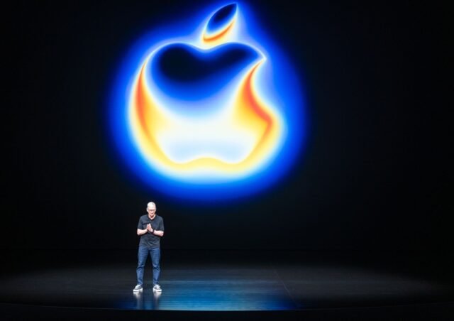 Tims Kuks uz skatuves Apple Keynote laikā 2025. gada 9. septembrī.Fotogrāfija: Džulians Čokkattu