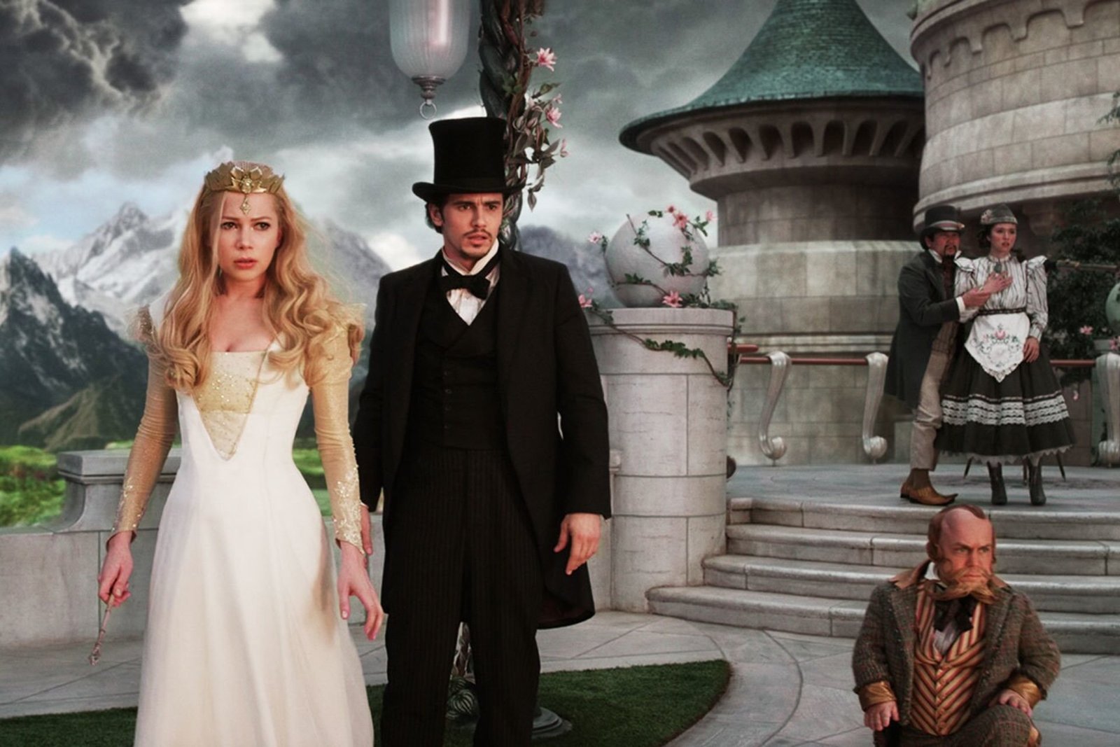 Mēs zinām, ka viņš salauzīs viņas sirdi; jāņem vērā viņa pagātnes uzvedība, kā arī grimases un acu grozi, ko viņš izdara, kad viņa sāk runāt par mūžīgu kopā būšanu. Viņa ir pilnībā akls, kad viņš viņu pamet, un viņas sirds sāpes kļūst šausminošas, kad viņas pasaulīgākā māsa (Reičela Veisa kā Evanora) izmanto draudīgu burvestību, lai pārvērstu Teodoru par to, ko mēs uzreiz atpazīstam kā Rietumu ļauno raganu.