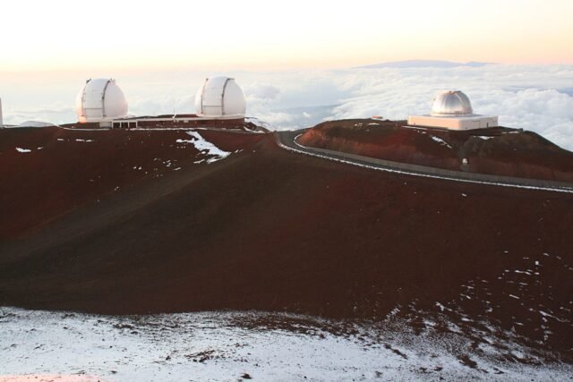 WM Keck observatorija, dvīņu kupoli kreisajā pusē, atklāja 13 dažādus ķīmiskos elementus baltā pundura atmosfērā, kas tur neietilpst.