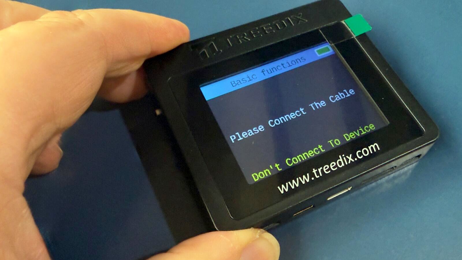 Šim darbam piemērotais rīks ir Treedix daudzfunkcionāls USB kabeļa testeris. Šis kabatas izmēra sīkrīks var pastāstīt visu, kas jums jāzina par kabeli (iespējams, vairāk nekā jums nepieciešams), un darīt to ātri un uzticami.