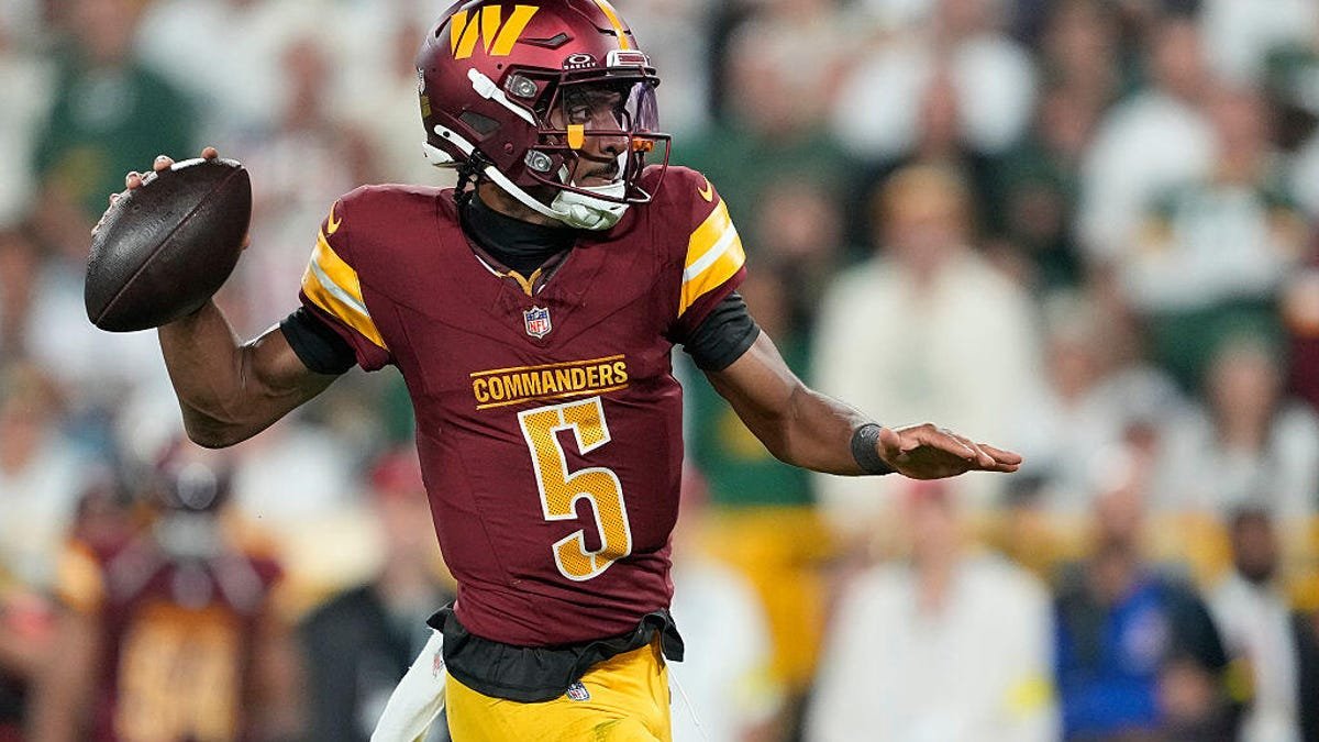Džeidens Daniels un Vašingtonas Commanders uzņem Sietlas Seahawks svētdienas nakts futbolā kanālos NBC un Peacock.