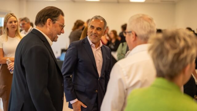 Dr. Claudio Soares, centrs, ir redzams 2024. gada augustā Psihedēlijas veselības un pētniecības centra atklāšanas pasākumā Kingstonā, Ontā. (Windfall Care)