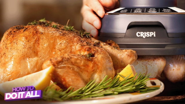 Vai zinājāt, ka gaisa cepeškrāsnī varat pagatavot visu vistu? Skatieties, kā JD izmēģina Ninja Crispi, un uzziniet ātru un vienkāršu recepti gardas veselas vistas pagatavošanai.