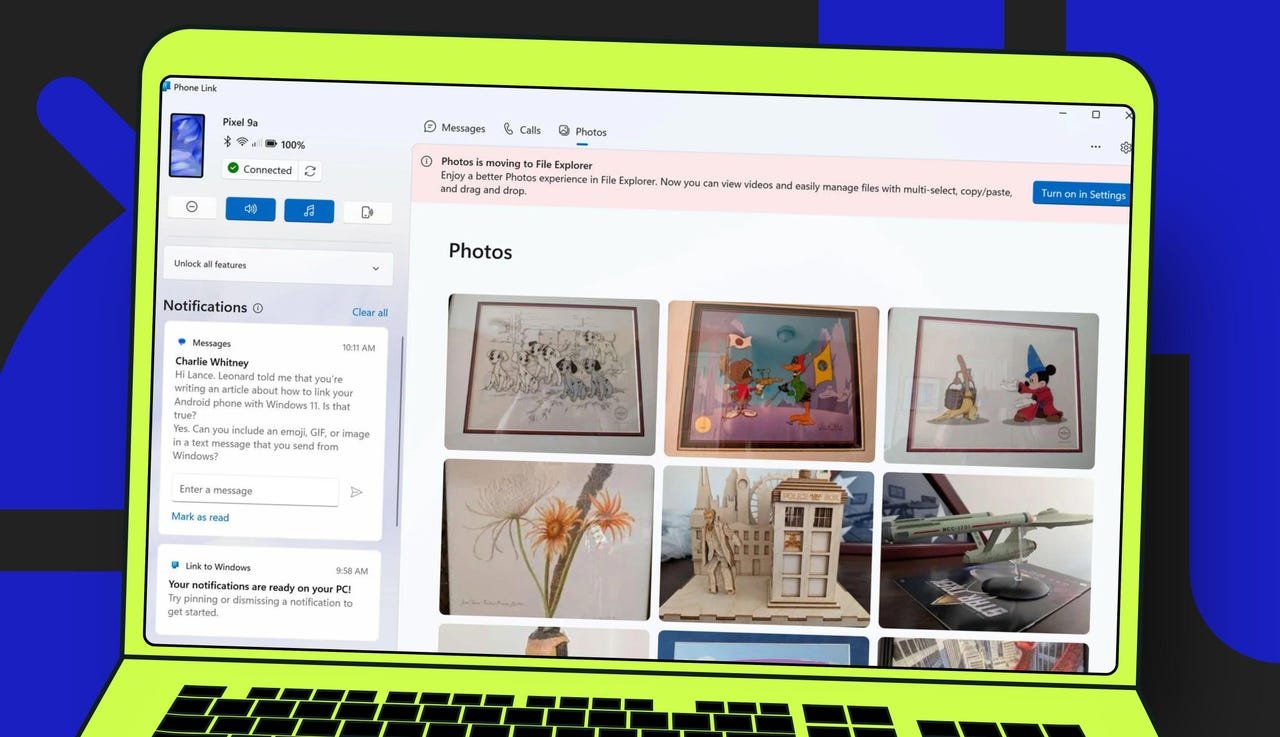Ja tālrunis un dators ir savienoti pārī, izmantojot Microsoft Lietotne Phone Linkvarat izmantot Home windows, lai veiktu tālruņa zvanus un atbildētu uz tiem, lasītu īsziņas un atbildētu uz tām, skatītu fotoattēlus tālrunī un saņemtu paziņojumus.