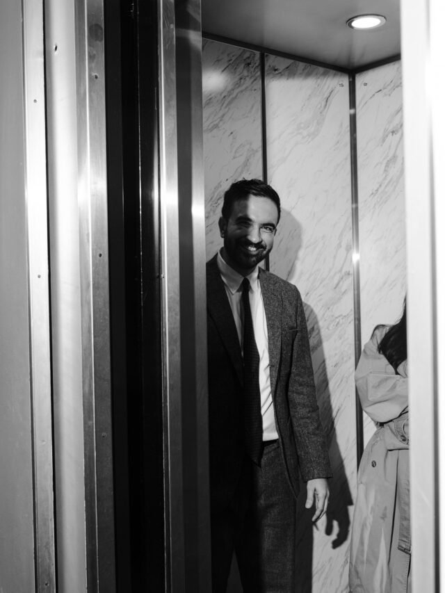 Wager kādam, kas ir tikpat visur kā Mamdani, klejošana drošās biroja robežās var ilgt tikai tik ilgi. Precīzāk sakot, četrdesmit piecas minūtes, pirms mūsu intervija ir beigusies un Mamdani (drošības detaļas pacēlumā) rotaļīgi pievienojas WIRED fotogrāfiem rosīgā Manhetenas ielā, pozējot dzeltenā kabīnē un staigājot šurpu turpu pa ietvi. Būtu pārspīlēti teikt, ka garāmgājēji to ņēma vērā. Viņi uzņēma pašbildes — vismaz piecus mazāk nekā 10 minūtēs. Viņi arī paņēma kampaņas materiālus, šķietami tik iedvesmojoties no Zaddy Zohran, ka viņi bija spiesti pievienoties viņa 80 000 cilvēku lielajai brīvprātīgo armijai. Un, tipiskā Ņujorkas veidā, viņi to visu darīja bez šķietama personīga kauna, kliedzot Mamdani vārdu no atvērtajiem biroju torņu un automašīnu logiem; kliedzot uz viņu no ielas pāri un kvartāla lejā.